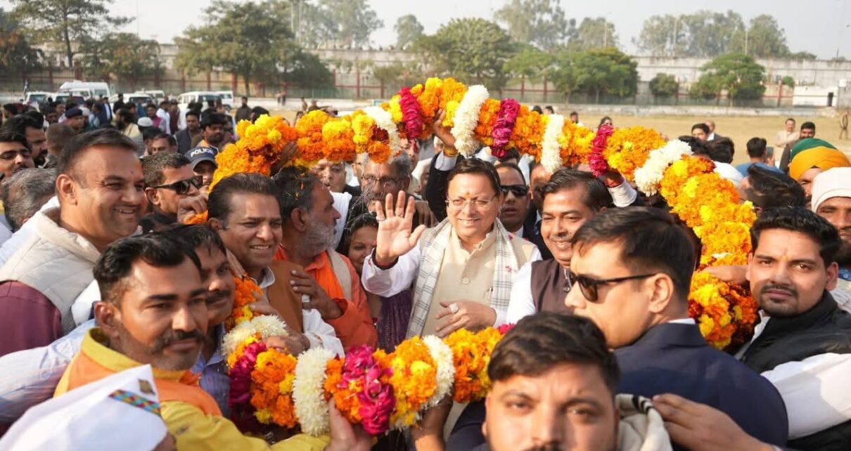 हरिद्वार में गुरुकुल कांगड़ी हेलिपैड पर किसानों ने मुख्यमंत्री पुष्कर सिंह धामी का उत्साहपूर्वक स्वागत किया
