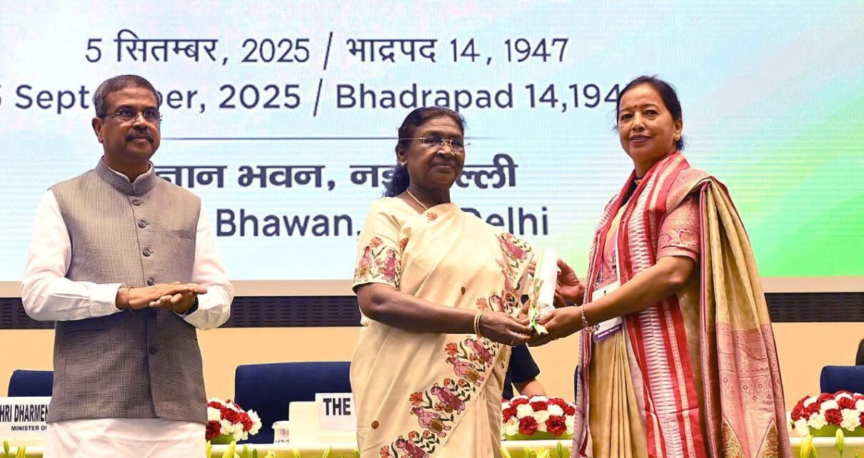 नई दिल्ली स्थित विज्ञान भवन में आयोजित राष्ट्रीय शिक्षक पुरस्कार-2025 समारोह में राष्ट्रपति श्रीमती द्रौपदी मुर्मू की गरिमामयी उपस्थिति में केन्द्रीय शिक्षा मंत्री श्री धर्मेन्द्र प्रधान ने देशभर के 45 चयनित उत्कृष्ट शिक्षकों को सम्मानित किया। इस अवसर पर उत्तराखण्ड के चम्पावत जिले के राजकीय प्राथमिक विद्यालय च्यूरानी की प्रधानाध्यापिका डॉ. मंजू बाला को भी इस प्रतिष्ठित पुरस्कार से अलंकृत किया गया। डॉ. मंजू बाला को यह सम्मान शिक्षा में त्रिभाषा तकनीक को अपनाकर शिक्षण-प्रक्रिया को अधिक सहज, प्रभावी एवं विद्यार्थियों के अनुकूल बनाने हेतु प्रदान किया गया है। इस उपलब्धि के साथ ही वे उत्तराखण्ड की पहली महिला प्रधानाध्यापिका बनी हैं जिन्हें यह राष्ट्रीय स्तर का सम्मान प्राप्त हुआ। उनका योगदान उत्तराखण्ड राज्य के शिक्षकों और विद्यार्थियों के लिए प्रेरणास्रोत है।
