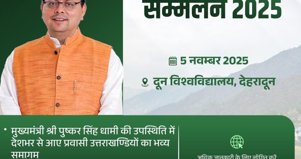 आगामी 5 नवम्बर को दून विश्वविद्यालय, देहरादून में आयोजित प्रवासी उत्तराखण्डी सम्मेलन 2025 में मुख्यमंत्री श्री पुष्कर सिंह धामी करेंगे प्रवासियों के साथ सीधा संवाद।