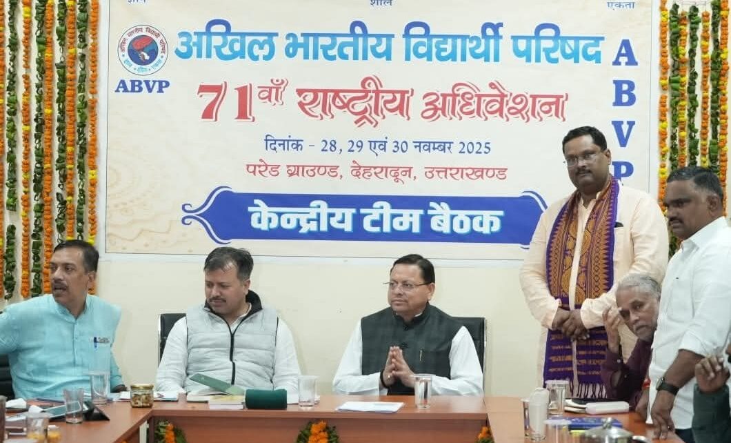 मुख्यमंत्री श्री पुष्कर सिंह धामी ने आज दून विश्वविद्यालय में अखिल भारतीय विद्यार्थी परिषद (ABVP) के 28 से 30 नवम्बर 2025 को देहरादून में आयोजित होने वाले 71वें राष्ट्रीय अधिवेशन से संबंधित केंद्रीय टीम की बैठक में प्रतिभाग किया।