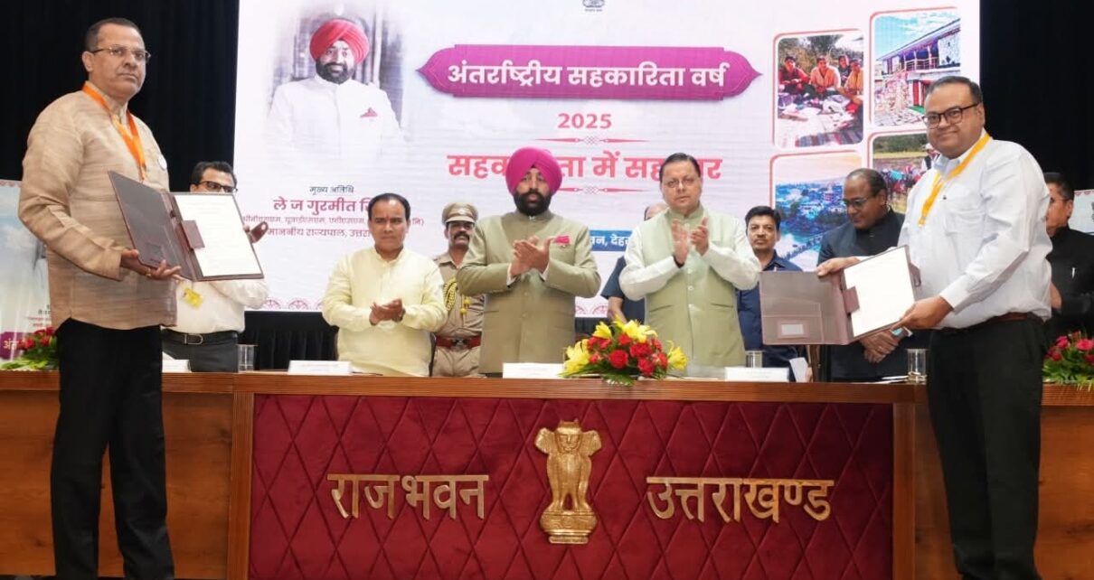 राज्यपाल लेफ्टिनेंट जनरल श्री गुरमीत सिंह (से नि) एवं मुख्यमंत्री श्री पुष्कर सिंह धामी ने आज राजभवन में अंतर्राष्ट्रीय सहकारिता वर्ष-2025 के उपलक्ष्य पर आयोजित ‘सहकारिता में सहकार’ कार्यक्रम में प्रतिभाग किया। इस अवसर पर राज्यपाल और मुख्यमंत्री की उपस्थिति में भारतीय सहकारी समिति लिमिटेड और उत्तराखण्ड राज्य सहकारी संघ के मध्य समझौता ज्ञापन हुआ।