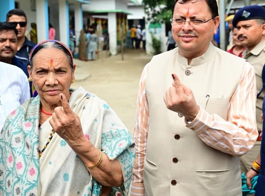 मुख्यमंत्री पुष्कर सिंह धामी ने त्रिस्तरीय पंचायत चुनाव के क्रम में आज राजकीय आदर्श प्राथमिक विद्यालय नगला तराई, जिला ऊधमसिंह नगर में बूथ न0 3 पर लाईन में लगकर मतदान किया। मुख्यमंत्री के साथ उनकी माताजी श्रीमती बिशना देवी ने भी मतदान किया।