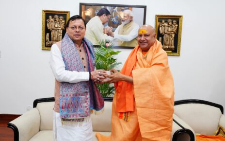मुख्यमंत्री पुष्कर सिंह धामी से मुख्यमंत्री आवास में महामंडलेश्वर स्वामी यतीन्द्रानंद गिरि महाराज ने शिष्टाचार भेंट की। इस अवसर पर उनके मध्य आध्यात्मिक, सामाजिक एवं राष्ट्रहित से जुड़े विभिन्न विषयों पर विस्तार से विचार-विमर्श हुआ। मुख्यमंत्री श्री पुष्कर सिंह धामी ने महामंडलेश्वर स्वामी यतीन्द्रानंद गिरि महाराज का स्वागत करते हुए कहा कि संत-महात्माओं के आशीर्वाद […]